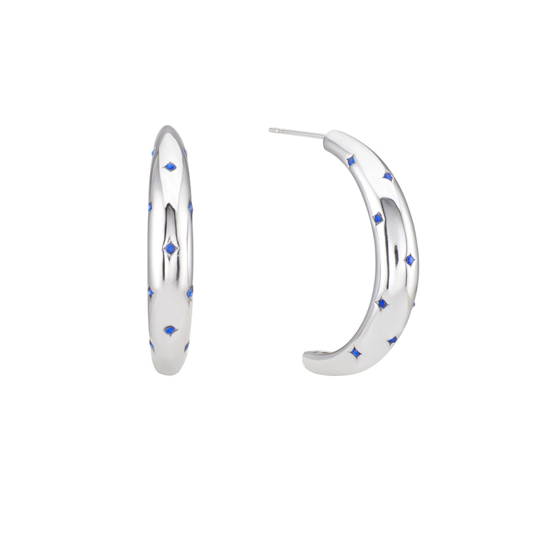 Skye Blue Silver Chunky Moon-shape star Hoop Earrings