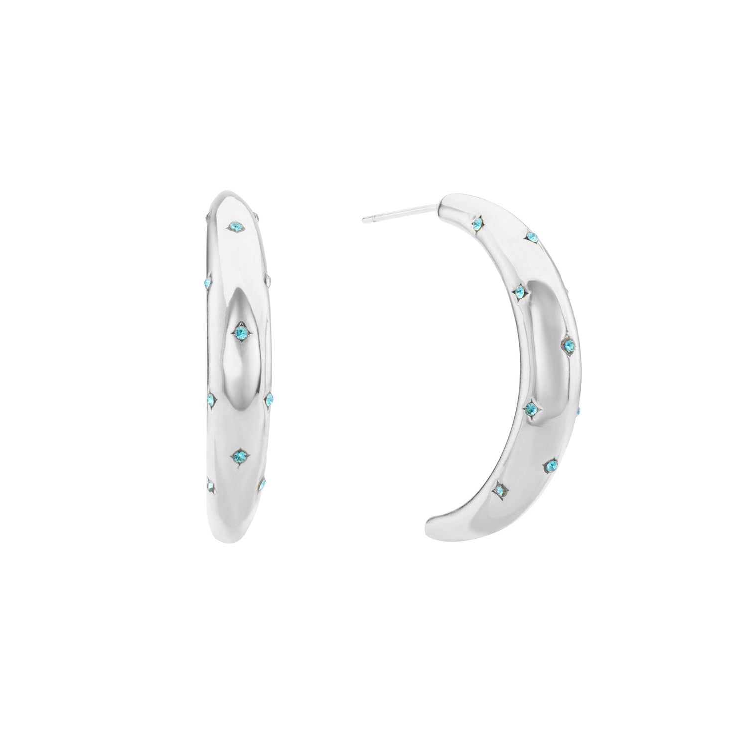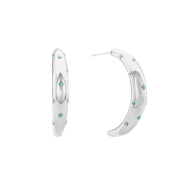 Skye Turquoise Silver Chunky Moon-Shape Star Hoop Earrings