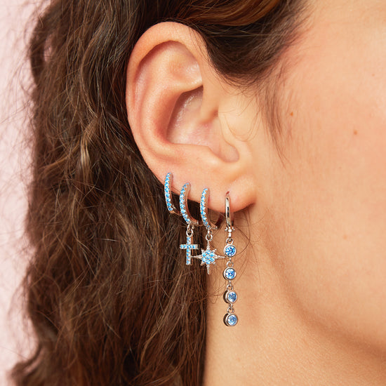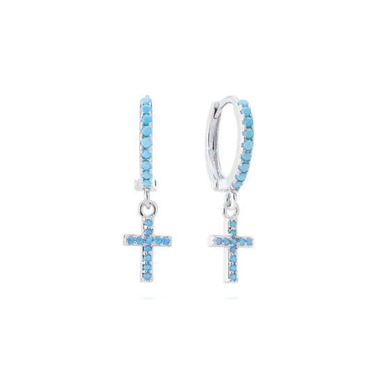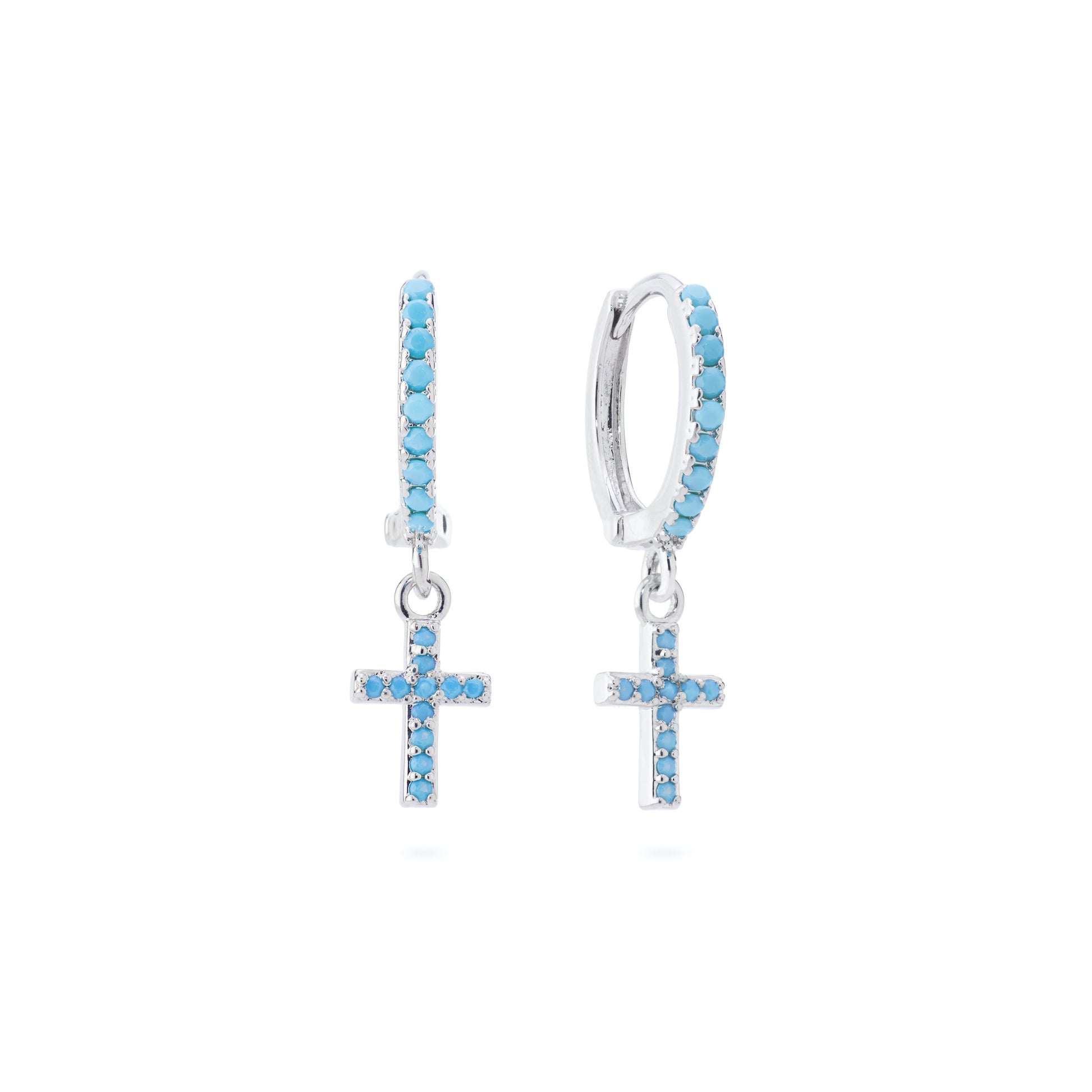 The Camilla Cross Huggie Earrings are a timeless design with a modern touch. Each huggie is set with a row of sparkling stones and finished with a small drop cross, also fully embellished for extra shine.