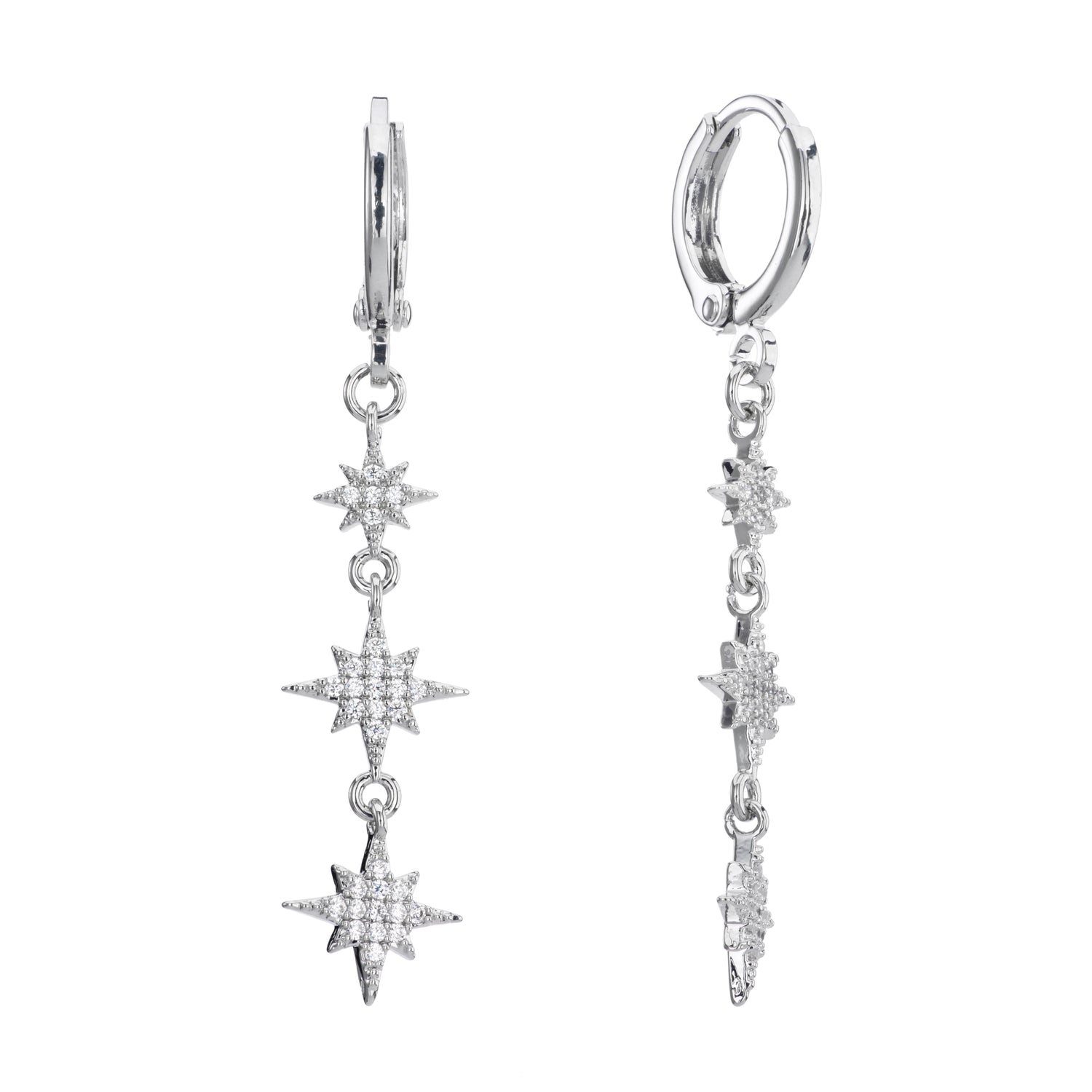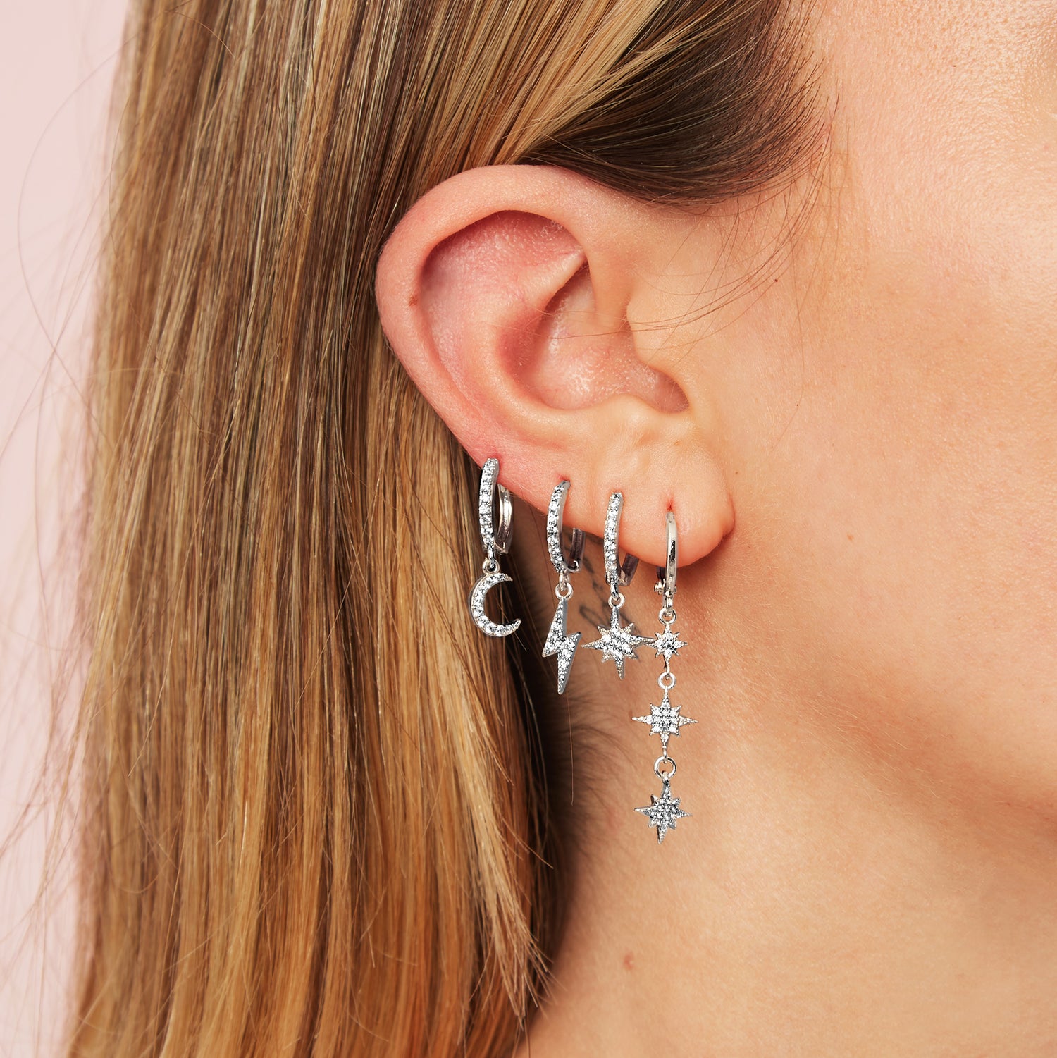 Romilly Crystal Silver Droplet Star Huggie Earrings
