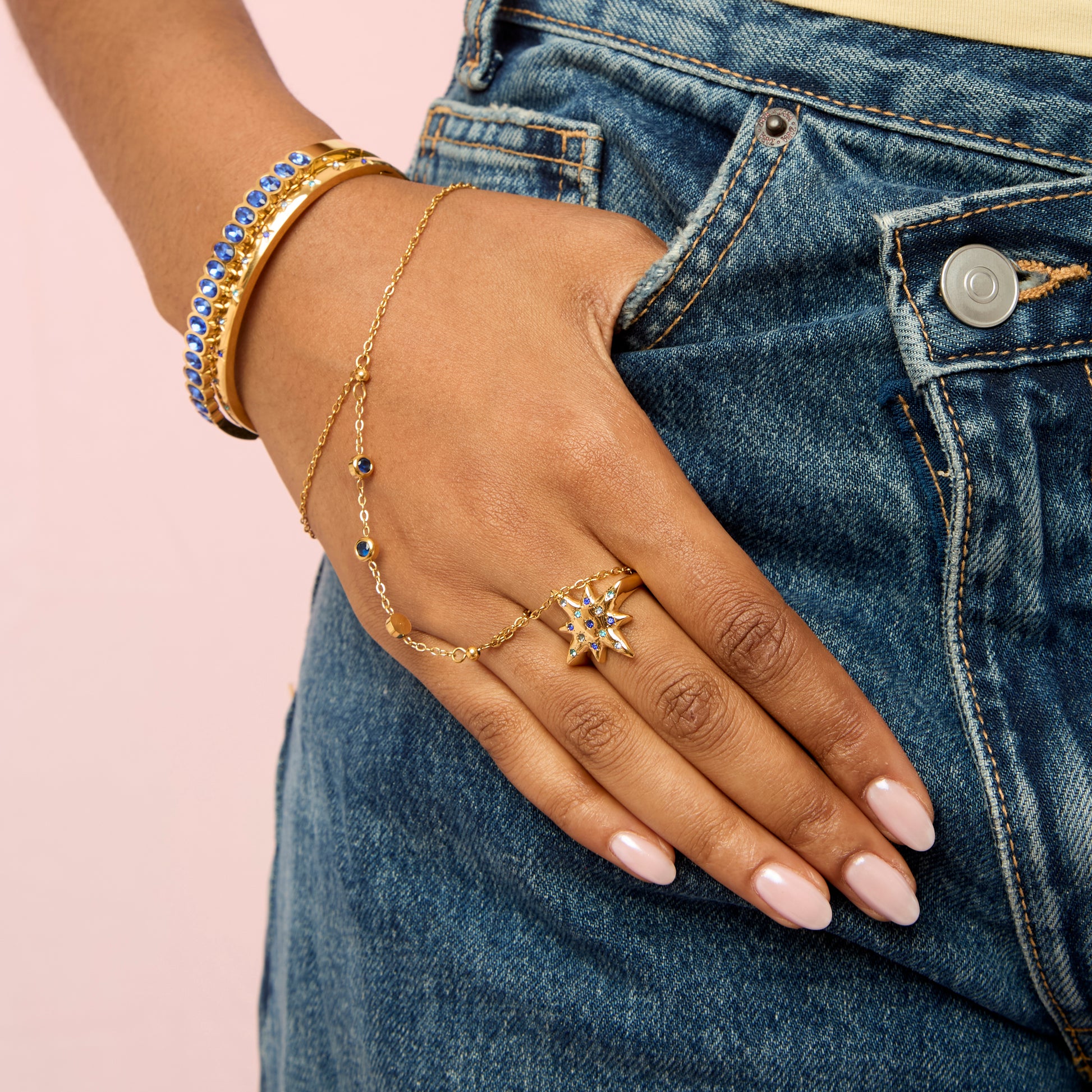 Willow Gold Multi-Blue Chunky Star Ring SIZE L
