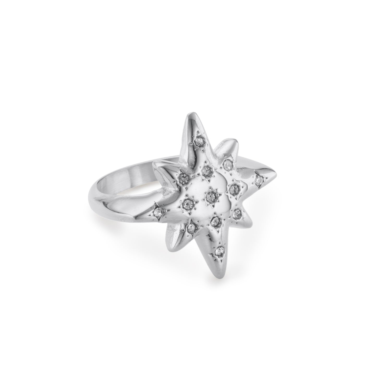 Willow Silver Crystal Chunky Star Ring SIZE N